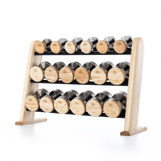 每橫排的啞鈴直徑均保持不變,而多層的啞鈴實木框架不僅節省空間,還具有極高的穩定性。