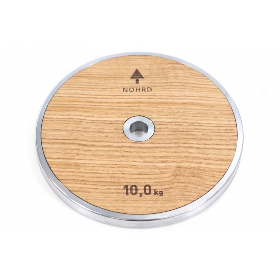 10 kg 槓片,表面覆蓋木皮,每套包含兩片。